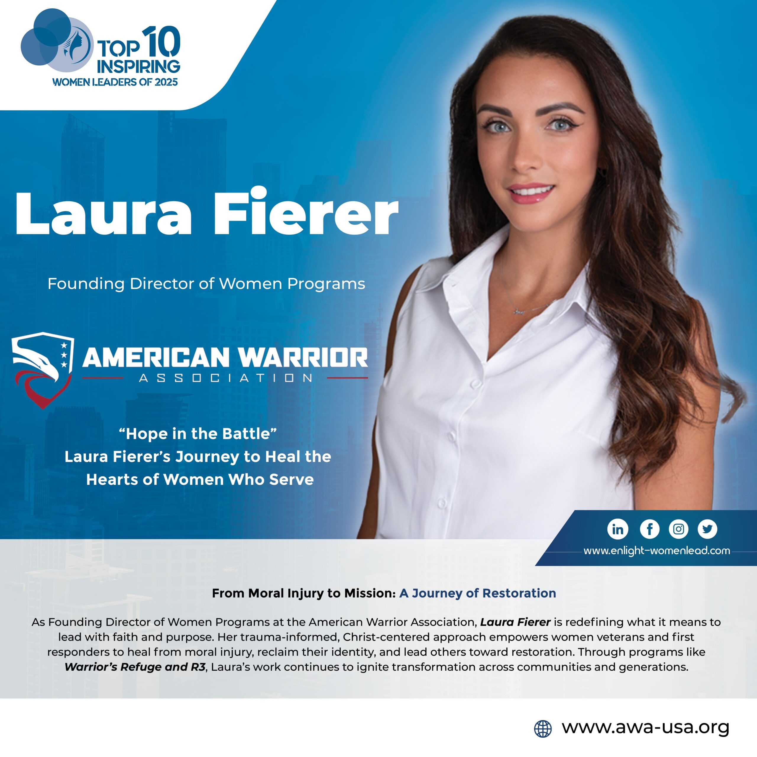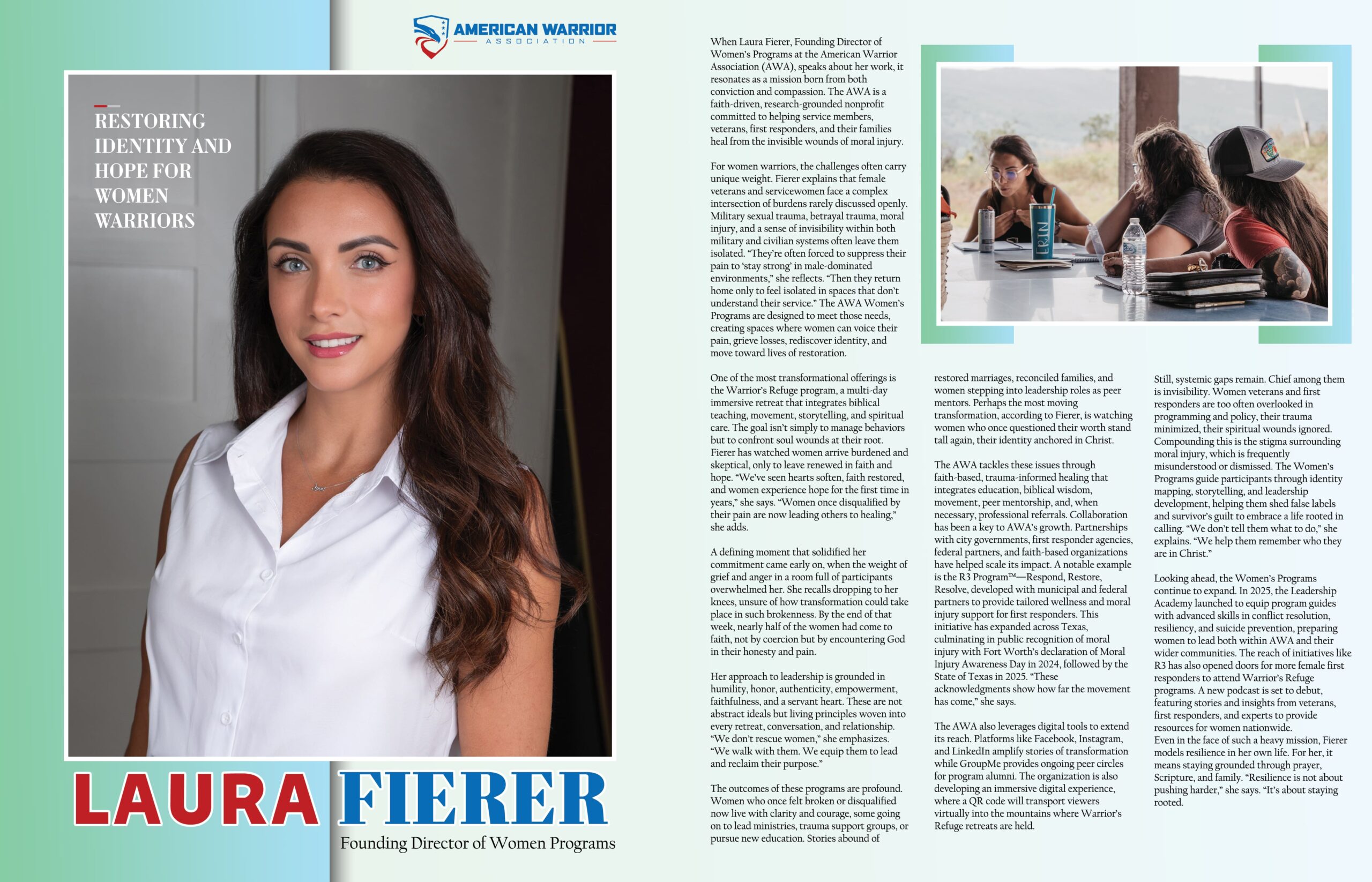 When Laura Fierer, Founding Director of Women’s Programs at the American Warrior Association (AWA), speaks about her work, it resonates as a mission born from both conviction and compassion. The AWA is a faith-driven, research-grounded nonprofit committed to helping service members, veterans, first responders, and their families heal from the invisible wounds of moral injury.